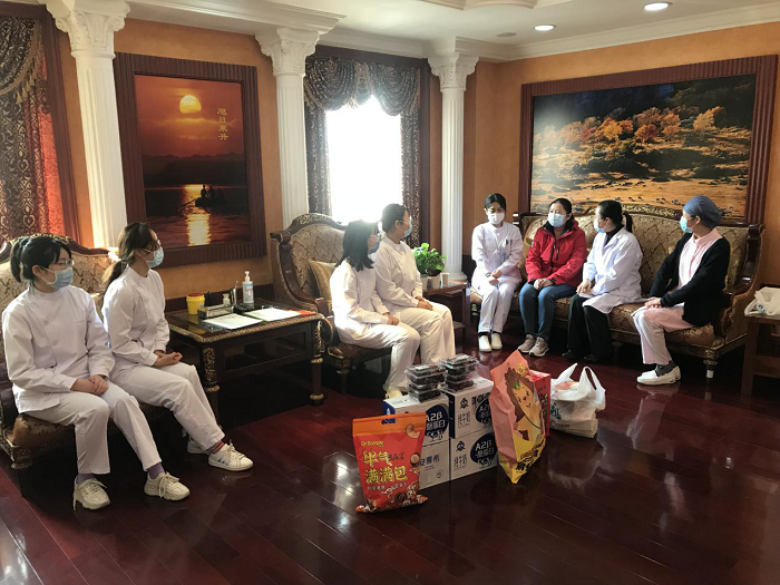 慰问现场暖意融融,实习同学对领导和老师们的看望和慰问倍感亲切温暖,表示一定谨记教导、遵守规定、坚守岗位,圆满完成实习任务。