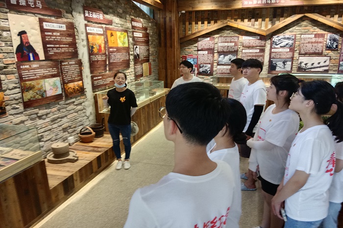 7月9日,实践团成员参观马郢社区和刘云峰烈士纪念馆,开展红色文化学习活动。马郢社区展台上发黄的报纸、铮亮的勋章,墙壁上多样的画作、生动的展板和栩栩如生的沙盘,无不展现着着马郢的时代变迁与乡村振兴发展。刘云峰纪念馆里“永恒的怀念、辉煌的丰碑、烽火的回忆、血染的风采”四大展陈板块,展现了杨庙地区的仁人志士为新中国的成立抛头颅洒热血、不畏牺牲、奉献自我的英雄事迹。聆听完他们的故事,社会实践成员深深体会到当今幸福生活的来之不易,感受到了身上的重任,纷纷表示作为新时代青年,应牢记使命,将红色精神传承发扬下去。