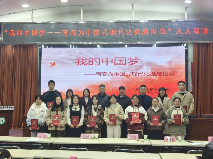 12月3日,学院举办“我的中国梦—青春为中国式现代化挺膺担当”人人演讲院级复赛。校关工委委员彭大枝,学生处副处长丁瑞、院党委副书记陈然及思政理论课教师孔洁、叶娟、吴珊珊受邀担任评委。