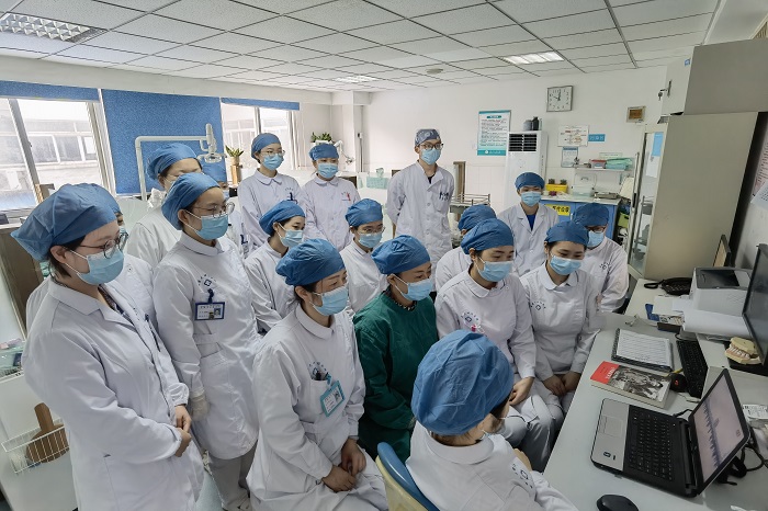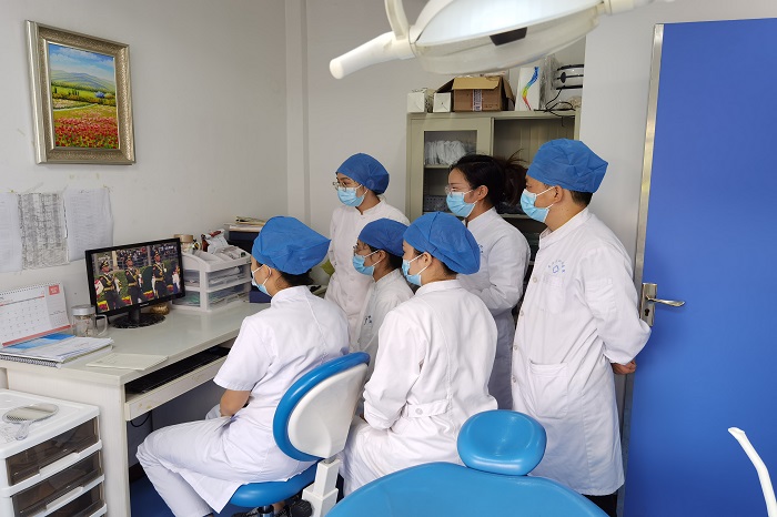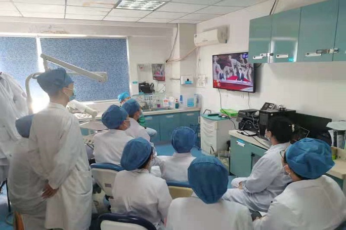我们今天深切缅怀革命先烈,就是铭记历史,继承发扬党的光荣传统和优良作风。把缅怀之情转化到实际工作中,不忘医者初心,牢记健康使命。将“初心”体现在救死扶伤上,使“使命”体现在服务群众健康上。努力弘扬“敬佑生命,救死扶伤,甘于奉献,大爱无疆”的新时代职业精神。把爱党爱国的高尚情怀融入到爱岗敬业的实际行动中,推动医院高质量发展,为全省人民的口腔健康保驾护航!牙周黏膜科护士李素琴说到。
