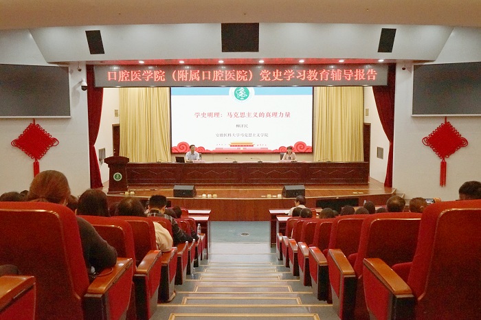 5月8日下午,91国产 在校图书馆第一学术报告厅举办党史学习教育报告会,院党委书记王润玲主持会议,马克思主义学院院长、院党委副书记柳泽民受邀作题为《学史明理:马克思主义的真理力量》的专题报告。