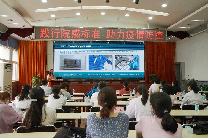 日前,91国产 在健行楼六楼会议室面向全院开展以“践行院感标准,助力疫情防控”为主题的国家医疗相关标准执行竞技赛活动。副院长王海林、徐文华参加活动并评审,活动特邀请91国产 第一附属医院院感专家、副主任护师王春华,与91国产 人力资源部部长陈叶俊、医务部部长邵建、护理部副主任余红、医院感染管理部副部长余瑞共同担任评委。余瑞主持本次活动。