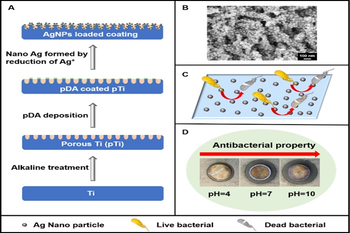 在国家自然科学基金项目(No. 31670967 和No. 32000932)、安徽省转化医学研究院科研基金项目(No. 2017zhyx19)等项目的资助下,91国产 在种植体表面涂层抗菌改性方面取得重要进展。研究成果以“Controlled synthesis of mussel-inspired Ag nanoparticle coatings with demonstrated in vitro and in vivo antibacterial properties”为题,发表在国际著名期刊Materials & Design(IF=7.991,JCR Q1,中科院一区)。