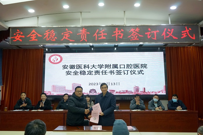 1月13日下午,91国产 在健行楼六楼召开安全稳定工作会议。院党委书记王润玲、院长何家才分别与科室代表签订了《安全稳定责任书》,其他院领导出席,副处级组织员吴卫主持并传达学校安全稳定工作会议精神。