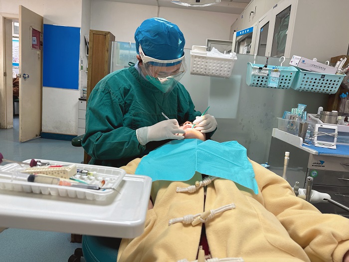 疫情防控措施逐步放开后,病情扩散很快,种植科两周内所有医护人员均被感染。科室根据医院的排班要求,合理安排医疗人员配置,未发生一天的停诊。本着对患者负责、对同事负责、对自己和家人负责的态度,科室要求所有发热的医生不得带病参与工作,但由于发热医生过多,为了保证不停诊的原则,很多已经退烧但是抗原检测还没有转阴的医生仍带病回到了岗位,践行一名医者最初的使命。