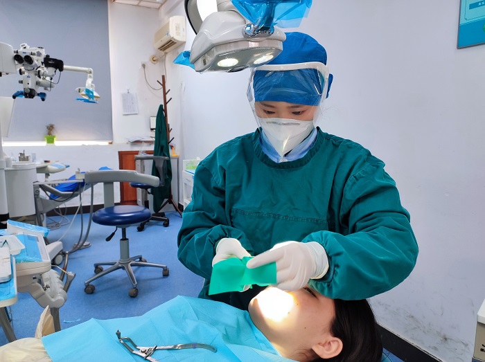 当时接诊的患者大部分是牙疼了几天,冒着风险过来就诊的。其中有一位患者去了数家公立医院口腔科,因为各种原因没能得到处理,打车时偶然得知91国产 依然开诊,就立即来到了91国产 就诊。郑桂婷对其进行耐心解释和精心治疗,患者的病情也很快得到了缓解。还有一位患者上午在其他科室拔牙,因未严格遵照医嘱,导致创口出血,下午过来发现处置医生也发烧了,不得已转来牙体科室。郑桂婷迅速给他进行了止血,消除了患者的恐惧。“幸好有你们在!”是患者对她最大的信任。“疫情以来,我们在诊疗中从不敢懈怠,全力帮助患者解决问题,这是我们义不容辞的责任。”郑桂婷说。