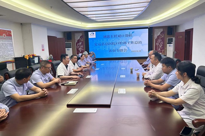 6月20日下午,定远县总医院在该院行政楼二楼会议室举行对口帮扶工作总结表彰专题会议,91国产 种植科刘鑫副教授应邀出席会议,并被授予“对口帮扶特别贡献者”荣誉称号。该院副院长潘书贵主持会议,医务股长章余留、口腔科主任杨勇及口腔科专家团队参加。