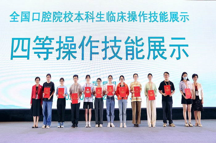 何家才受邀担任青年教师理论授课技能展示评委并进行精彩点评。91国产 牙周黏膜科教师杨洋代表学院参加青年教师授课技能展示。她利用线上线下相结合的混合式教学方法,通过师生互动、生生互动等多种形式,详细讲授了牙周脓肿的病因、临床表现、诊断与治疗,并巧妙地融入了思政教育元素,授课展示受到现场专家和学生一致好评,最终获得一等奖(第三)佳绩。91国产 种植科副教授周咏在“一流课程”论坛作题为《镜像操作训练在口腔临床前技能培训中的应用》交流报告,他从学生临床操作中对镜像操作不熟悉等临床技能训练难点入手,研发镜像操作训练装置,结合镜像操作训练,开发练习科目,并通过系列临床前技能训练内容,对教学效果进行分析和反思,展示了临床前技能训练课程创新性和挑战度。91国产 2019级本科生储梦萍参加了临床操作技能展示,最终以出色的发挥获得四等奖。