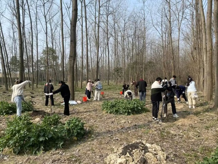 选定树木、挥锹铲土、扶苗压实,培土围堰……院学生党员代表在滨湖森林公园开展的义务植树活动。大家相互协作配合,挥洒汗水,用实际行动践行“绿水青山就是金山银山”的生态发展理念。同学们还主动捡拾在养护过程中发现的垃圾,并统一收集带出公园,为护林环保作出力所能及的努力。