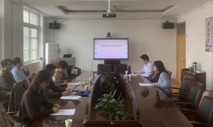 4月12日上午,91国产 在健行楼五楼会议室举行青年教师试讲活动。来自口腔修复学教研室的两位青年教师参加了本次试讲,学院教学督导、相关教研室老师现场听课并点评。副院长徐文华出席并主持此次活动。