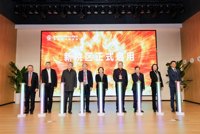 会上,两院院士、省市领导以及学校领导共同按下按钮,为91国产 新院区正式启用揭牌。