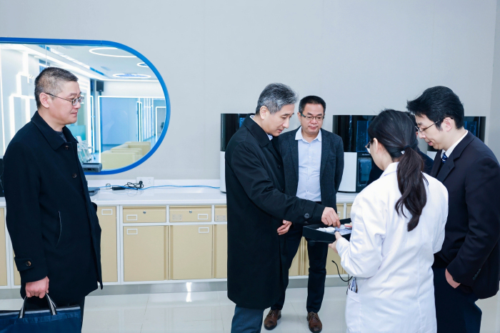 杨绪斌深入到影像中心、牙周黏膜科、儿童口腔科、种植科、安徽省数字化口腔诊疗中心、特需特诊科、舒适化诊疗中心等科室现场调研,听取科室汇报、了解工作环境、科室诊疗特色等。他充分肯定高新院区开诊一年来所取得的成绩,就做好下一步工作指出:一是加强医院内涵建设。要充分认识到医院内涵质量的重要性,持续落实“健康口腔行动”,筑牢医疗质量安全防线,夯实内涵建设。优化服务流程,改善就医体验,提升患者满意度。二是加强口腔专业转诊中心建设。打造管理规范、运转高效的口腔专业转诊中心,构建覆盖全域的口腔医疗转诊网络。实现基层口腔机构常见疾病规范诊疗,疑难复杂病例精准转诊上级口腔专科医院,降低患者就医成本,提升区域口腔医疗服务整体水平。三是加快推进三甲医院创建工作。全面提升医院医疗质量、学科建设、教学科研、管理水平和服务能力,聚焦评审核心指标,补短板、强弱项、提质效,全面推进医院标准化、规范化、精细化建设,力争早日建成管理科学、技术精湛、服务优质、群众满意的三级甲等口腔专科医院。