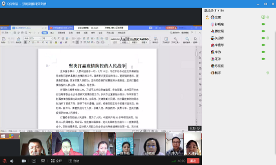 积极创新方式,10个党支部通过多种手机软件和平台,围绕“高举党旗,坚决打赢疫情防控阻击战”的主题开展了线上学习。