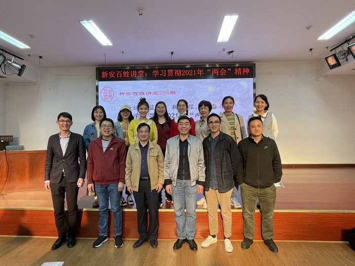 讲座后进行了简要的交流和沟通,并留下珍贵的合影。大家表示在新安百姓讲座中收获良多,要在中华民族伟大复兴战略全局和世界百年未有之大变局的两个大局中,增强“四个意识”,坚定“四个自信”,不忘初心,牢记使命,将更加饱满的热情投入到自己的工作中,为美好的未来而努力奋斗!