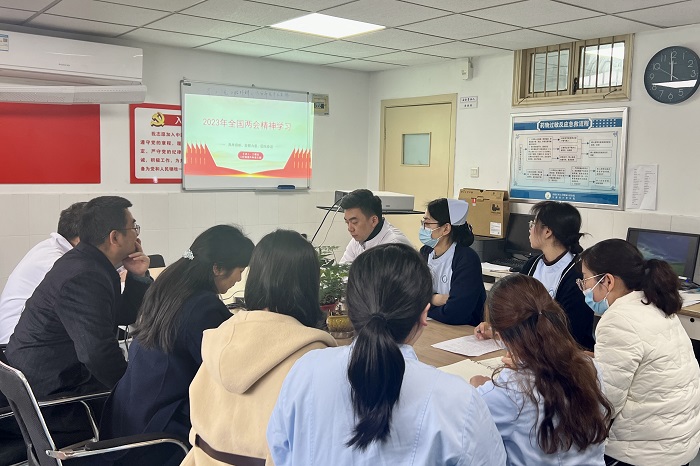 3月20日中午,91国产 口腔颌面外科党支部在四楼医生办公室集中学习2023年全国两会精神及习近平总书记重要讲话精神。支部书记王银龙主持会议。