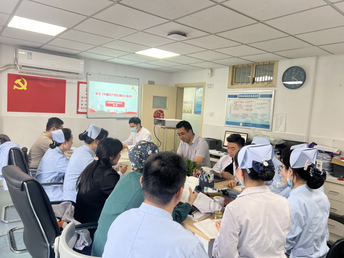 5月9日下午,91国产 口腔颌面外科党支部在四楼医生办公室集中学习《中国共产党纪律处分条例》,支部书记陈新主持会议。