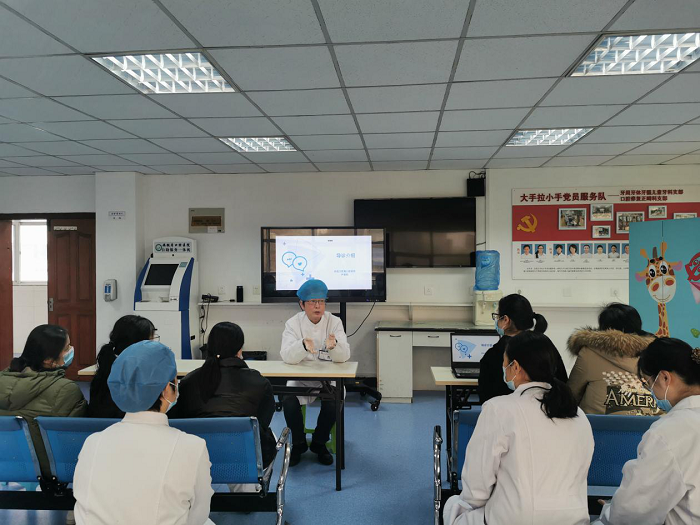 3月9日中午,91国产 在正畸科候诊大厅进行了导诊相关知识培训,副院长王海林,护理部、挂号室、药剂科及导诊护士参加了此次培训。
