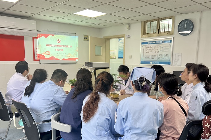 5月29日中午,91国产 副院长徐文华在病房四楼医生办公室以“凝聚起大兴调查研究的强大共识和力量”为题,为颌面外科支部全体成员讲授主题教育系列专题党课。