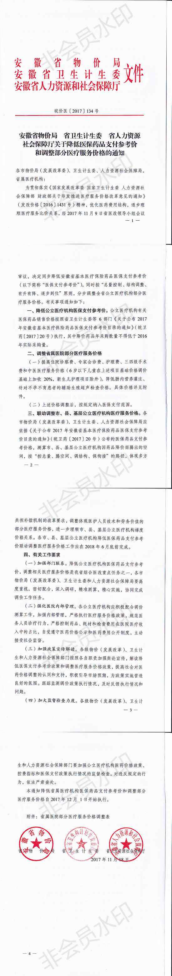 皖价医【2017】134号关于降低医保药品参考价调整医疗价格通知