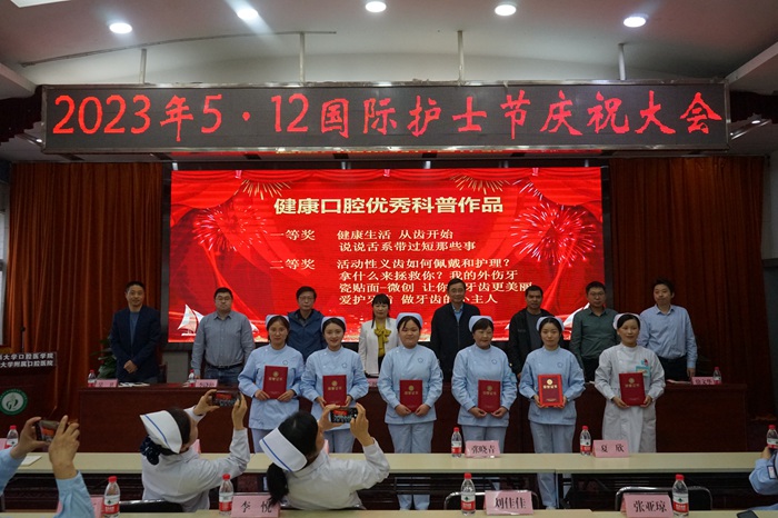 会前,医院面向全院护理人员开展了健康口腔优秀科普作品及8S管理标杆护理单元的评选活动,以进一步激励护理人员,提升护理服务质量和水平。会上,对获奖集体和个人进行了表彰,医院优秀护士代表结合个人工作作了发言。