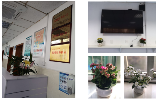 将获得的优质服务科室牌匾平整添置于科室外墙,并在候诊区办公桌台面上添加了一些清新怡人的花束,使得患者可以在一个良好的环境内等待就诊。在每个就诊区域的窗台上布置了一些清新空气愉悦心境的盆栽植物,为工作人员创造良好工作环境的同时,也为患者提供了舒适而温馨的就诊环境。