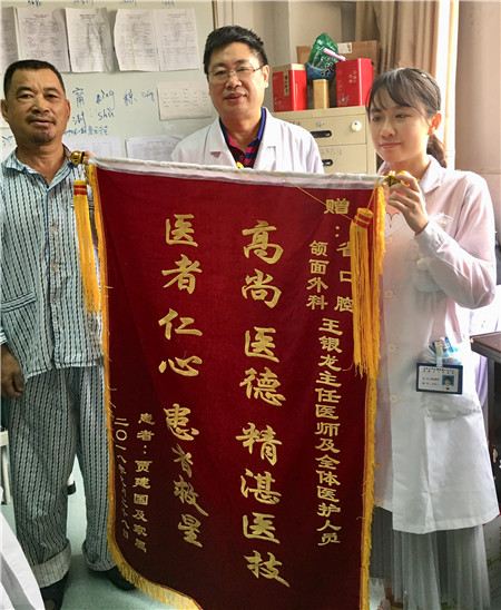 王银龙、程继光两位医生接过锦旗时感慨的说到:“病人的信任和理解是我们治疗和护理的信心,也给与我们极大的鼓励,我们工作之中的不足之处,今后应该更加努力学习,为更多的患者解除病痛,提供更优质的医疗服务。“