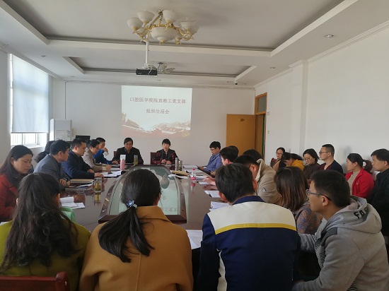 3月12日中午,口腔医学院(附属口腔医院)院直党支部在健行楼五楼会议室,召开了院直党支部组织生活会和民主评议党员会议,全体支部党员参加了会议。会议由院直党支部书记张黎主持。