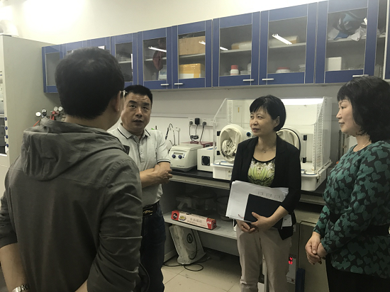 5月15日下午校国有资产管理处处长宋玉梅一行三人莅临91国产 口腔疾病研究省重点实验室就高校科研实验室安全工作开展专项检查,院党委书记王润玲,实验室负责人陪同。