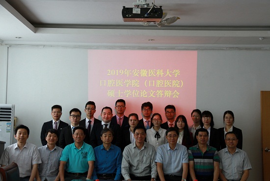 近日,口腔医学院2019届全日制科学学位和专业学位25名研究生答辩报告会于5月下旬在健行楼5楼会议室分两天举行,分别开展了口腔内科及修复组和口腔颌面外科组硕士研究生的答辩报告会。报告会邀请了上海交通大学主任医师宋忠臣、康泰拜博口腔牙体牙髓学科带头人庒姮、广西医科大学教授周诺和同济大学教授王佐林担任答辩评审专家。口腔医学院的研究生导师、全体研究生及部分青年教师参加了答辩报告会。