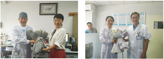 9月10日上午,91国产 党委书记王润玲、院长何家才、党委副书记陈然,人事科主任王坤玉等慰问组带着鲜花深入医院各个教研室、临床科室、实验室开展了教师节慰问活动,向奋战在临床教学一线的老师们送去节日的慰问和崇高的敬意,向全体教职医务员工致以节日的祝福,庆祝全国第35个教师节的到来。