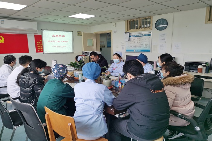 王银龙带大家领学习了《2022年两会政府工作报告》《2022年政府工作报告公布这13项医疗重点任务》等重点内容,并作总结发言,他指出,全国两会作为我国政治生活中的一件大事,要把学习宣传贯彻两会精神作为颌面外科党支部当前和今后一段时期的一项重要政治任务。希望广大党员干部职工要以两会圆满成功为新的起点,更加紧密地团结在以习近平同志为核心的党中央周围,毕力同心、苦干实干,打好疫情防控和协助医院发展两场硬仗,用实际行动护佑人民健康,以优异成绩迎接党的二十大胜利召开。