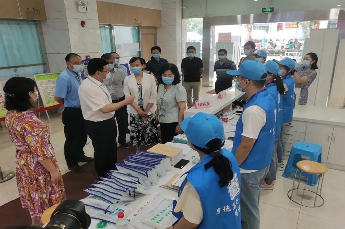 上午9时,校党委书记顾家山、校长曹云霞,副校长余永强及研究生学院负责人一行在学院领导的陪同下,看望了91国产 新生接待工作人员,详细询问了新生报到人数、物资发放情况,亲切慰问坚守岗位的工作人员以及学生志愿者,对他们认真负责的态度表示了肯定,并与志愿者们亲切合影留念。