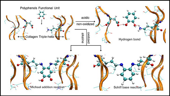 李全利教授带领的研究团队,通过对多酚类衍生物与胶原交联作用机理及影响交联反应的因素进行了广泛的研究。研究结果表明,多酚衍生物在酸性和碱性条件下交联胶原的机理不同。并且,多酚对胶原的改性作用与分子的复杂性和酚羟基的数量有关。另外,通过对改性后胶原各方面性能的比较分析,发现多酚类化合物用作交联剂时,其应用条件必须根据分子中酚羟基的数量来确定。交联剂的选择和交联条件应根据胶原改性的目的与交联效果相一致。该研究为多酚类交联剂在临床应用方面的选择和使用的合适条件提供了参考,为牙本质粘结的持久性提供了可能。