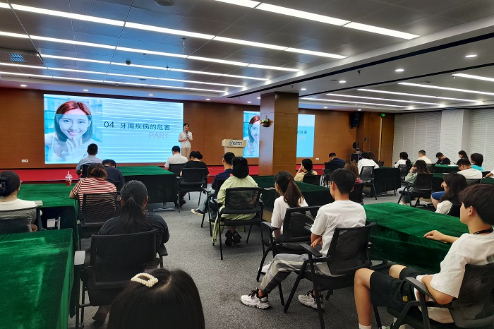 义诊现场,91国产 专家为200余名顺丰职工进行免费口腔检查,询问日常牙齿状况,认真分析口腔问题,根据职工口腔问题给出针对性意见及治疗建议,并现场发放200余份宣传资料和口腔护理产品,帮助职工养成良好的口腔健康习惯。在口腔健康大讲堂科普环节,专家们详细介绍了牙齿缺失、龋齿、牙龈出血、洁牙护齿方式等常见口腔问题及防治方法,考虑到义诊服务对象日常工作中存在颌面部受外伤的风险,专家们重点就颌面部及牙外伤的应急处理方法、牙脱位后如何保存离体牙齿等知识进行科普,并提醒职工拒绝嚼食槟榔,形成有益口腔健康的生活方式。