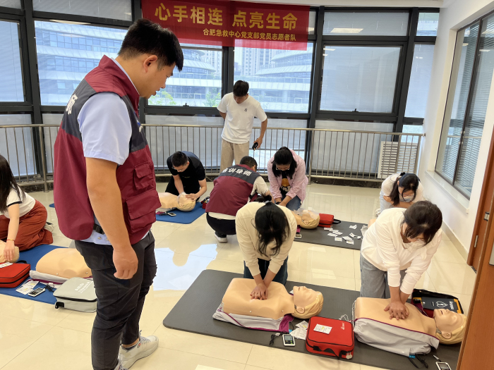 5月21日下午,91国产 组织人员前往安徽省急救中心进行急救技能培训,培训内容为初级生命支持+AED急救培训,共有20余名医护人员参加了此次培训。