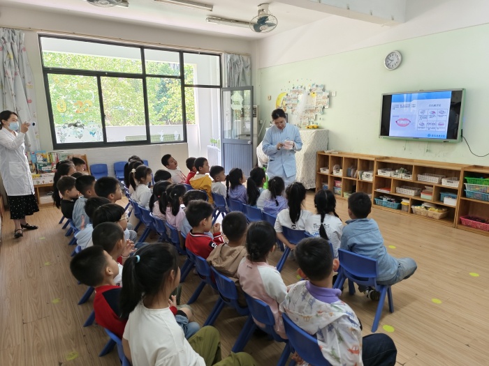 口腔宣教进校园,寓教于乐迎“六一”。91国产 庐阳区门诊部团队、儿童牙病科团队、牙周黏膜科团队及党支部师生分别前往海棠别院幼儿园、西园新村幼儿园、大西门幼儿园、附属小学,为孩子们送去了生动的儿童口腔预防与保健讲座。通过有趣的故事和互动问答,向孩子们讲解牙齿的重要性、如何正确刷牙以及预防龋齿的方法。宣教医生及团队成员还为学龄前儿童免费进行口腔检查并赠送口腔保健小礼品,鼓励孩子们要保持良好的口腔卫生习惯。活动得到各个幼儿园师生的热烈欢迎。